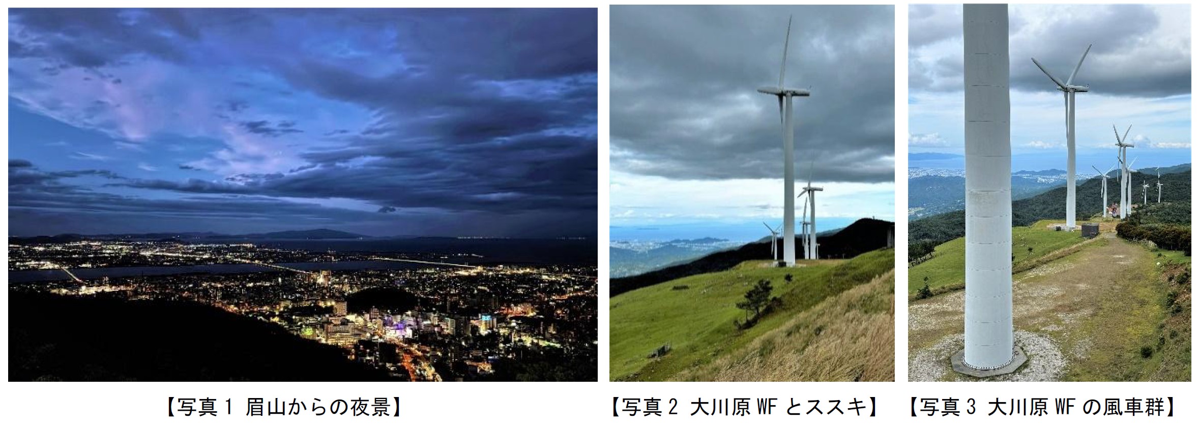 眉山から望む夜景は、徳島市街と吉野川および海の向こうの和歌山の街灯りなどによる、明暗の対比が織りなす、美しい光の絨毯模様を有しています。この夜景を生み出す電力の一部は、大川原ウインドファーム(WF)による風力発電によって供給されています。風力発電は、CO₂排出を抑制するクリーンエネルギーとして、地球温暖化対策に資するとともに、地域のエネルギー自給率向上にも寄与しています。一方で、風力発電は自然条件に依存する変動性電源であるため、電力系統においては需給バランスの維持が不可欠です。発電量の変動は、周波数の安定性に影響を与える可能性があり、火力・水力などの調整力を持つ電源との連携や、需給予測技術の高度化が求められています。これらにより、再生可能エネルギーの安定的な系統統合が可能となり、地域全体における電力供給の信頼性を確保しています。また、風車が立ち並ぶ大川原高原は観光資源としても注目され、環境教育やエコツーリズムの拠点としての活用も期待されています。眉山からの夜景は、こうした技術・環境・経済の融合によって実現された、持続可能な地域社会の象徴ともいえます。